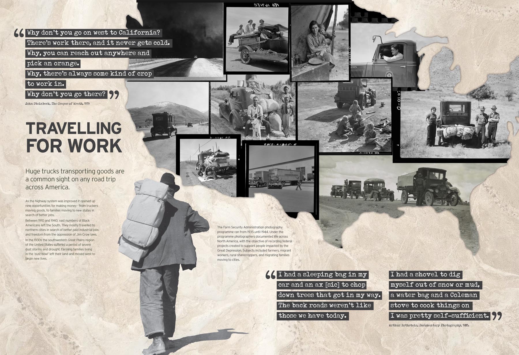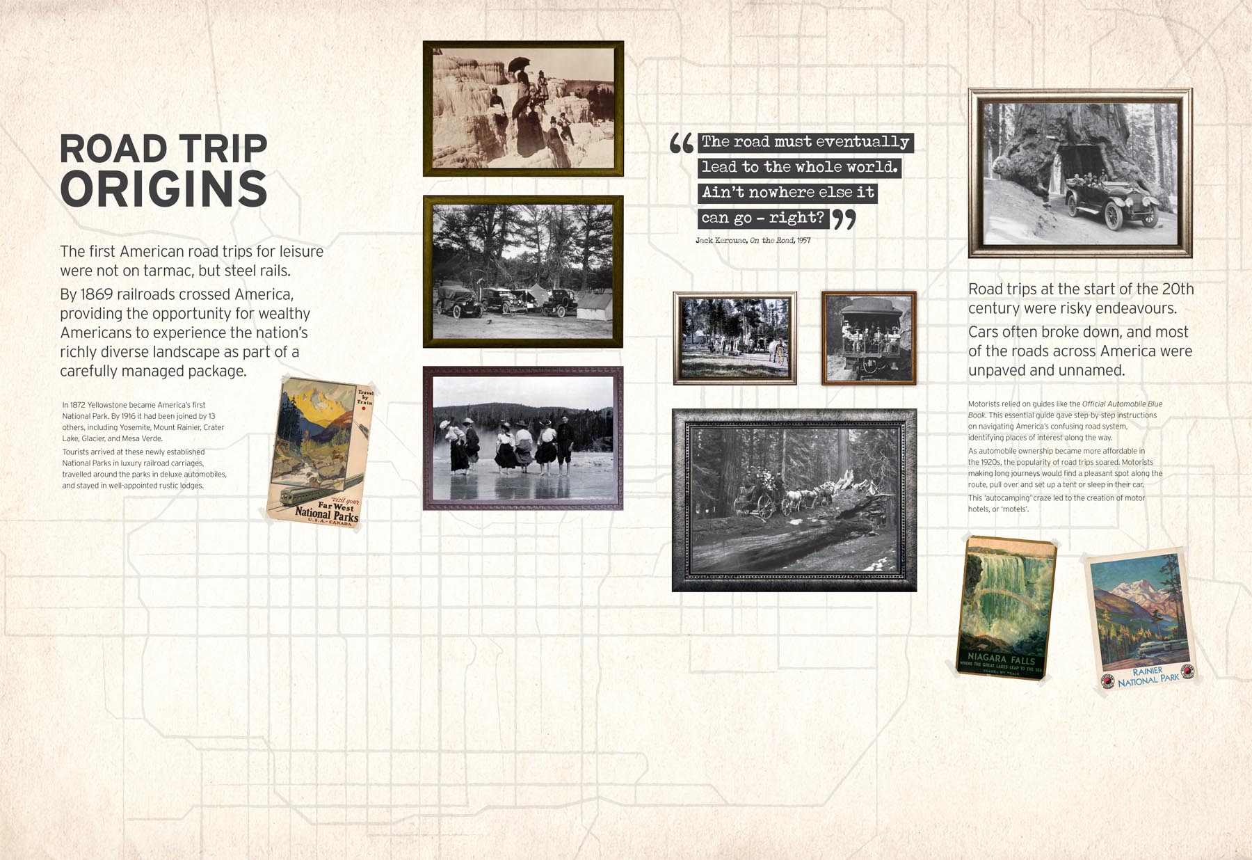 Smith and Jones delivered the American Road Trip Exhibition at The American Museum and Gardens in Bath. We researched and studied the American Road Trip, developed the interpretive strategy for the exhibition taking visitors on a journey of discovery, developed conceptual designs that worked across three exhibition galleries, and manufactured and installed every element of the exhibition.